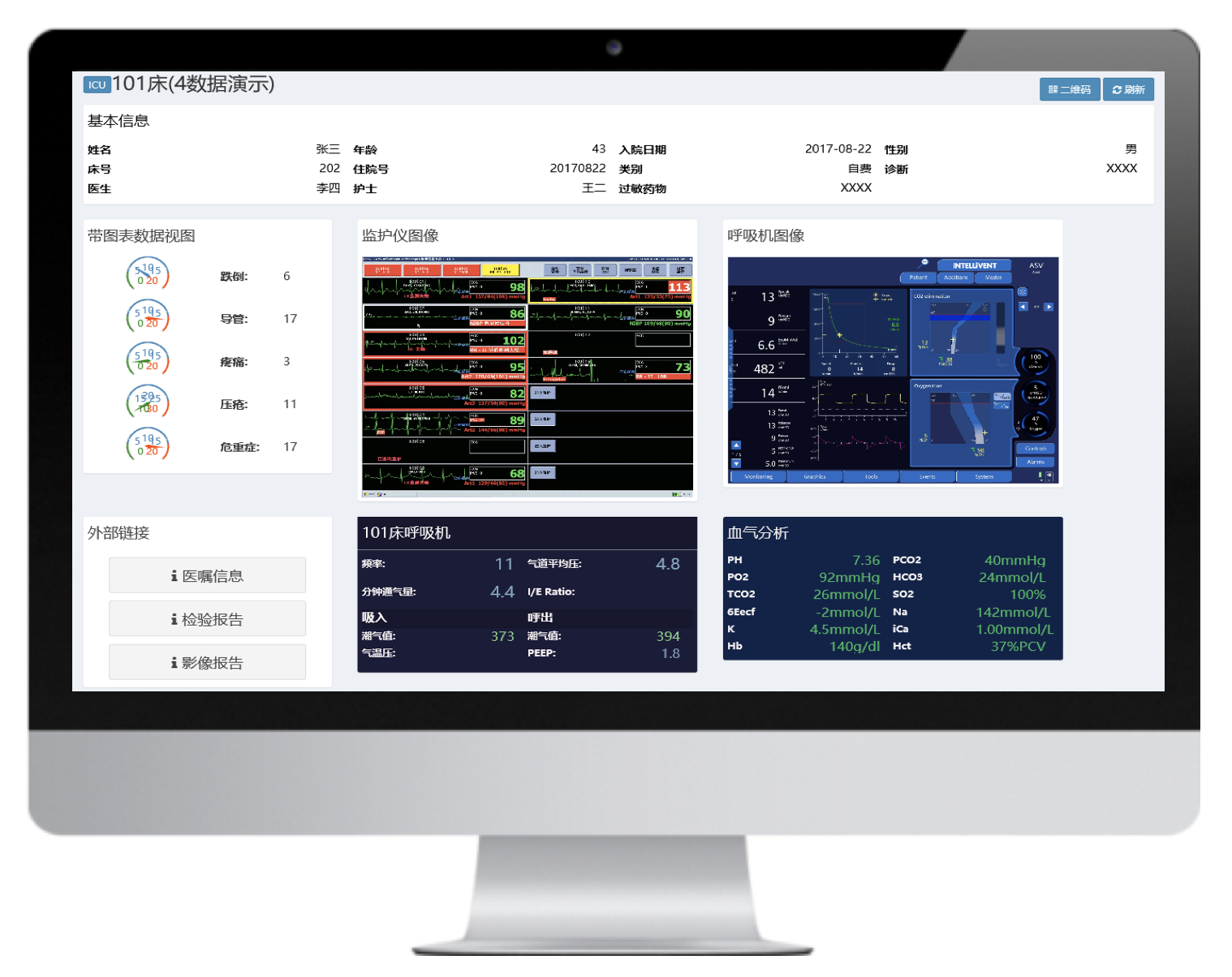 實時呈現病人體征參數、變化趨勢,診療設備參數,同時接入醫(yī)囑、檢驗結果數據,一體化呈現存儲和回溯,方便醫(yī)護急救、會診、查房